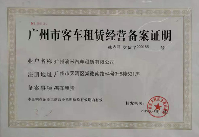 • 廣州市客車租賃經營備案證明